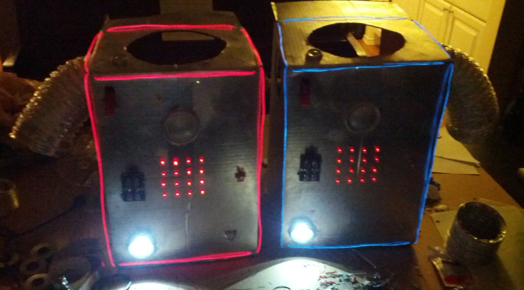 So I went to the show with no sound reactive lights, and the show was fun. I hadn’t seen MC Ohm-I or Kadesh Flow before and they were great, but I was still bummed that my quick hack had fallen flat. Enter: the DEF CON chill out room centerpieces. While I would never steal anything from them or purposefully destroy an art piece, I didn’t think it would do much harm to borrow a little of this wire. I had my leatherman on me, so I just clipped about 4″ of wire out, stripped the ends, popped my mask open and did something terrible. It worked.